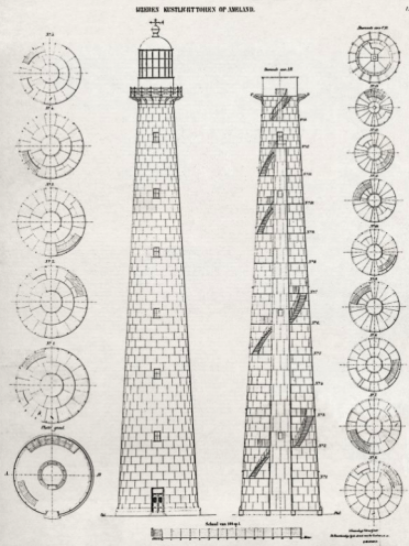 De passage tussen Terschelling en Ameland is verraderlijk vanwege de samenvloeiing van verschillende zeestromen. Voor een veilige scheepvaart was het nodig om deze passage 's nachts te verlichten. Toch was het gebied rond Ameland lange tijd duister. In 1876 werd enige verbetering gebracht toen er een kleine vuurtoren werd geplaatst in de duinen ten westen van Hollum. Het licht van deze vuurtoren brandde 15 meter boven hoogwater. Daarnaast werd er anderhalve kilometer ten zuiden van deze toren een tweede lichtopstand geplaatst voor de vissers. Dit was een achthoekig lichthuis op een ijzeren geraamte. Al snel bleek echter dat het licht van de eerste vuurtoren te zwak en niet hoog genoeg was om op grotere afstand zichtbaar te zijn. Er waren nieuwe maatregelen nodig. In 1879 ontwierp Quirinus Harder een hoge gietijzeren vuurtoren voor Ameland. In totaal ontwierp hij 26 vuurtorens, waarvan 10 voor de Nederlandse kust en 16 voor Nederlands-Indië. Dit was de laatste vuurtoren die Harder ontwierp.