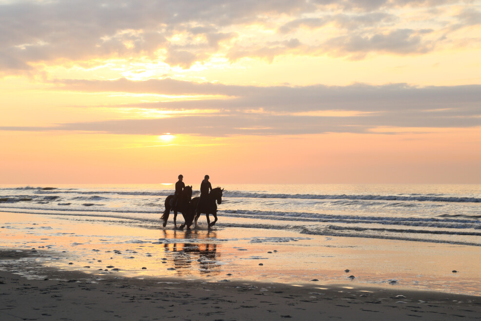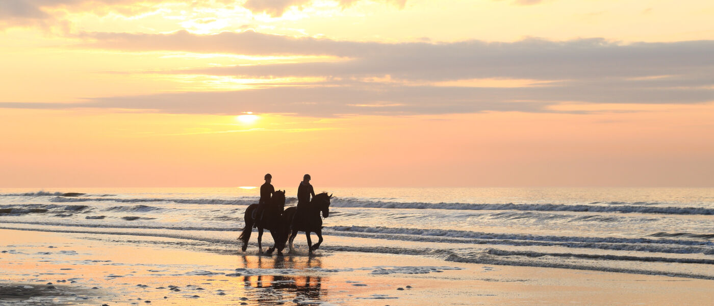 De zon op je gezicht, de duinen om je heen. Paardrijden op Ameland is onvergetelijk. Het strand, de bossen en het agrarische achterland lenen zich uitstekend voor ritten te paard. Of je nu een ervaren of onervaren ruiter bent, lessen wilt volgen of een paard en wagen tocht wilt doen, het kan op Ameland. In de maneges staan paarden voor u klaar om lekker de natuur in te gaan. Een ervaren ruiter kan zelf een rit maken, ook worden elke dag onder begeleiding een buitenritten gemaakt. Dit kan vanaf alle dorpen op het eiland met elk zijn eigen prachtige routes door uitgestrekte natuurgebieden. Ook kun je een privé rondrit maken met statige Friese en Koninklijke warmbloed paarden en wagen. Je bent verzekerd van een prachtige, buitengewone belevenis over het eiland.