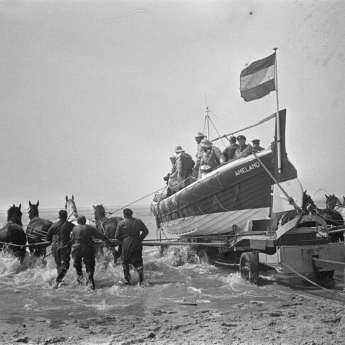 Bij storm was Ameland in de tijd van de zeilvaart voor schepen al snel lagerwal. De aanzet tot een georganiseerd reddingswezen langs de Nederlandse kust werd gegeven toen op 14 oktober 1824 het schip *De Vreede* verging voor de kust van Huisduinen. Voor iedereen die ook maar een beetje betrokken is bij het reddingswezen is dat een bekend verhaal. Veel minder bekend is dat in diezelfde nacht het Deense schip *Louise Augusta* strandde, iets ten noorden van Ballum. Twee Amelanders waagden een reddingspoging: zittend op een paard trotseerden zij de branding en brachten de schipbreukelingen één voor één naar het strand.